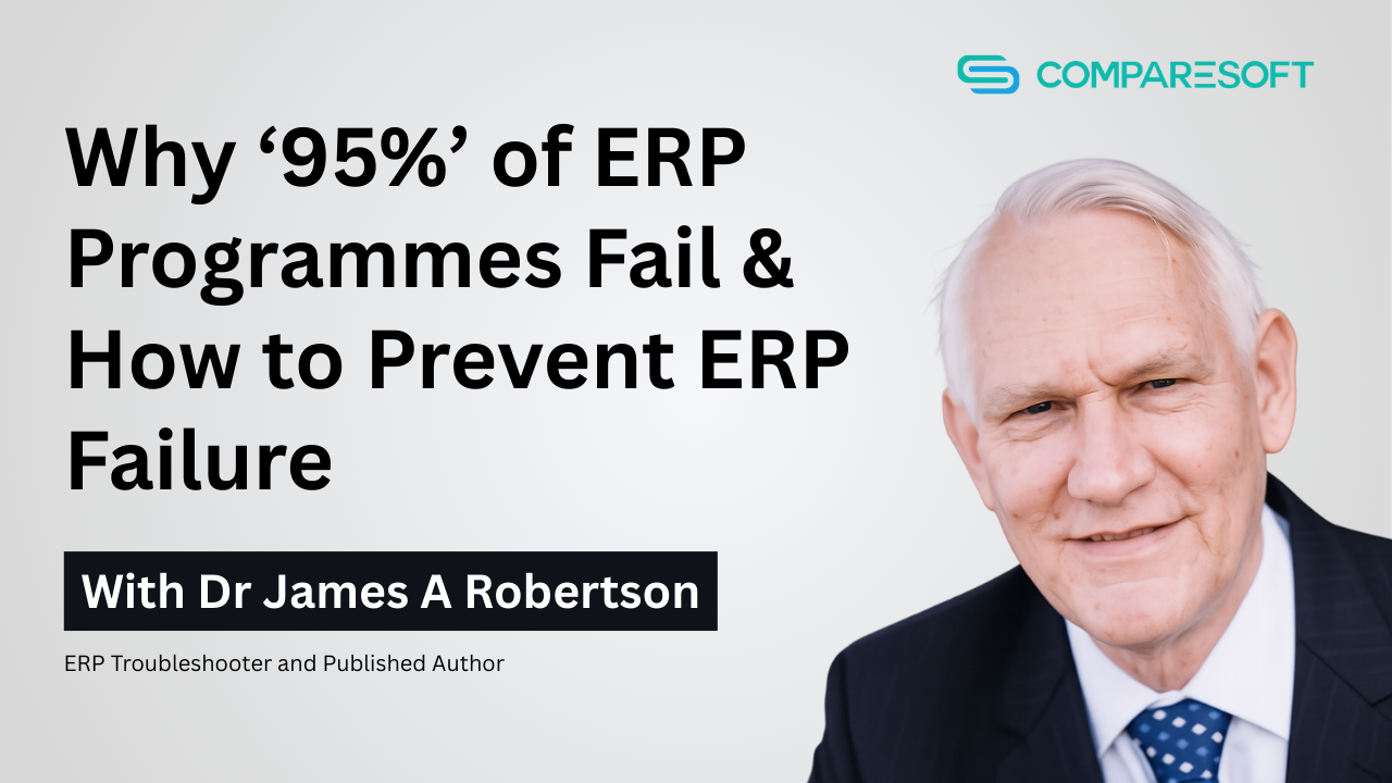 In this episode of the Comparesoft ERP Podcast, James explains that up to 95% of ERP programmes fail at the strategic decision-making level. ERP systems may go live, transactions may process, and reports may run, yet leadership still cannot rely on the ERP to support decisions that matter.